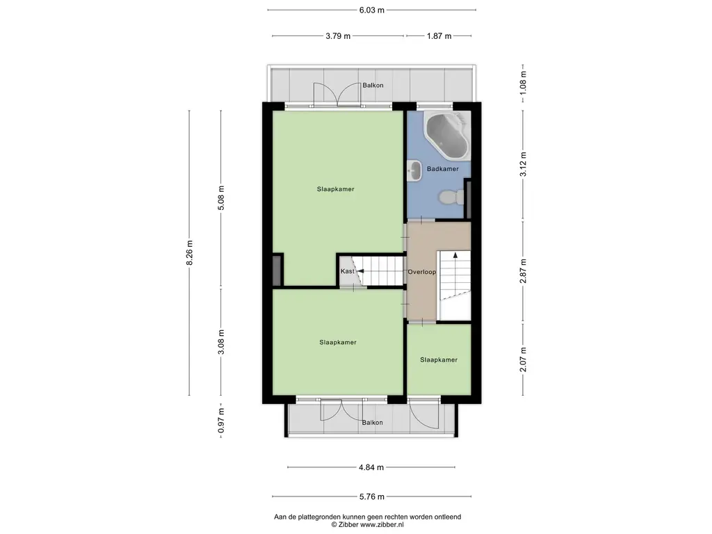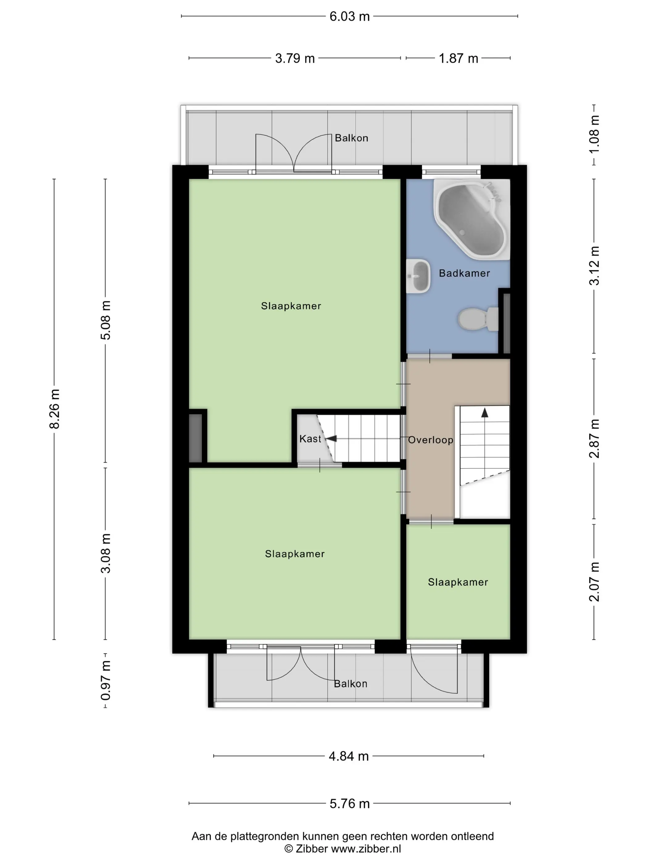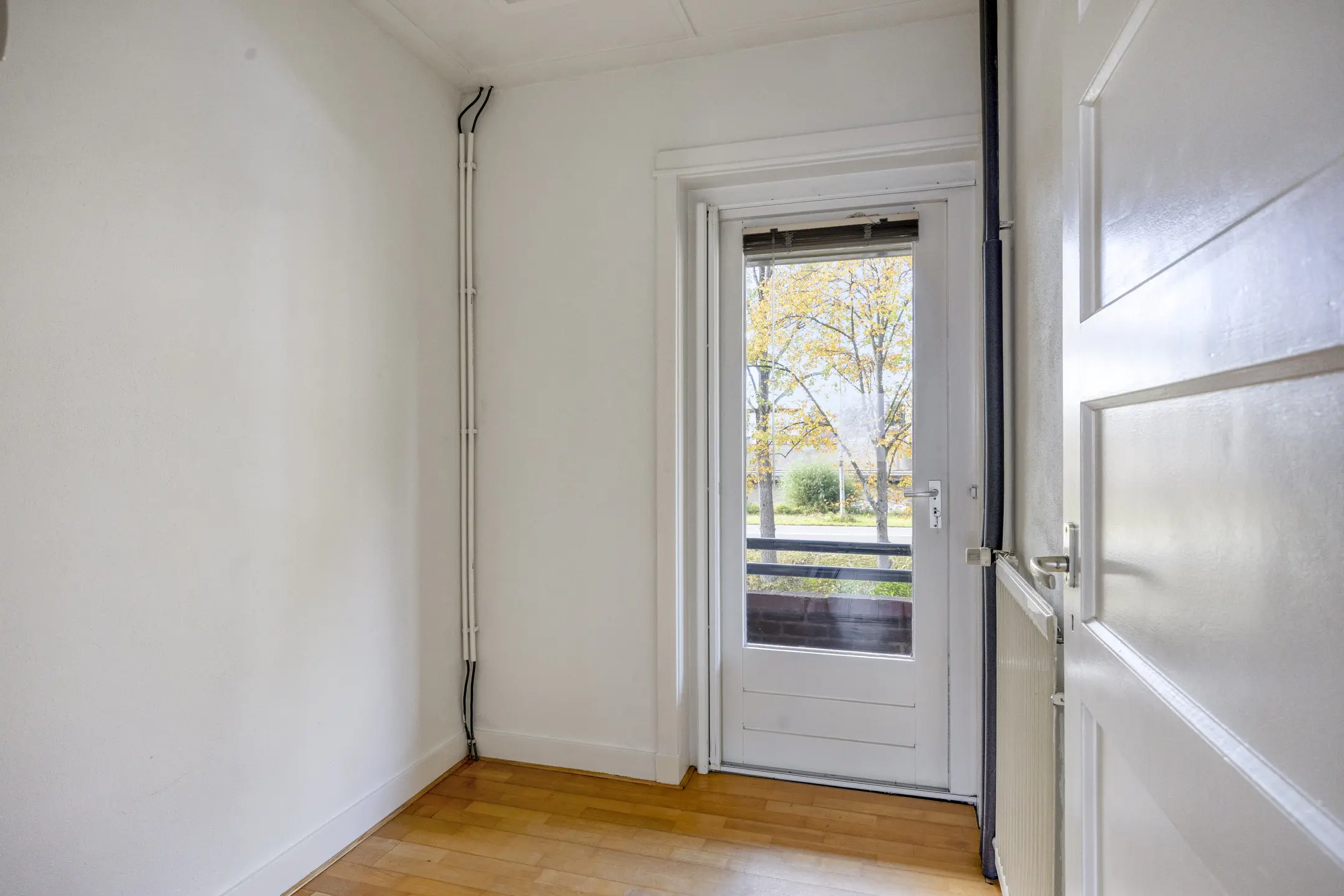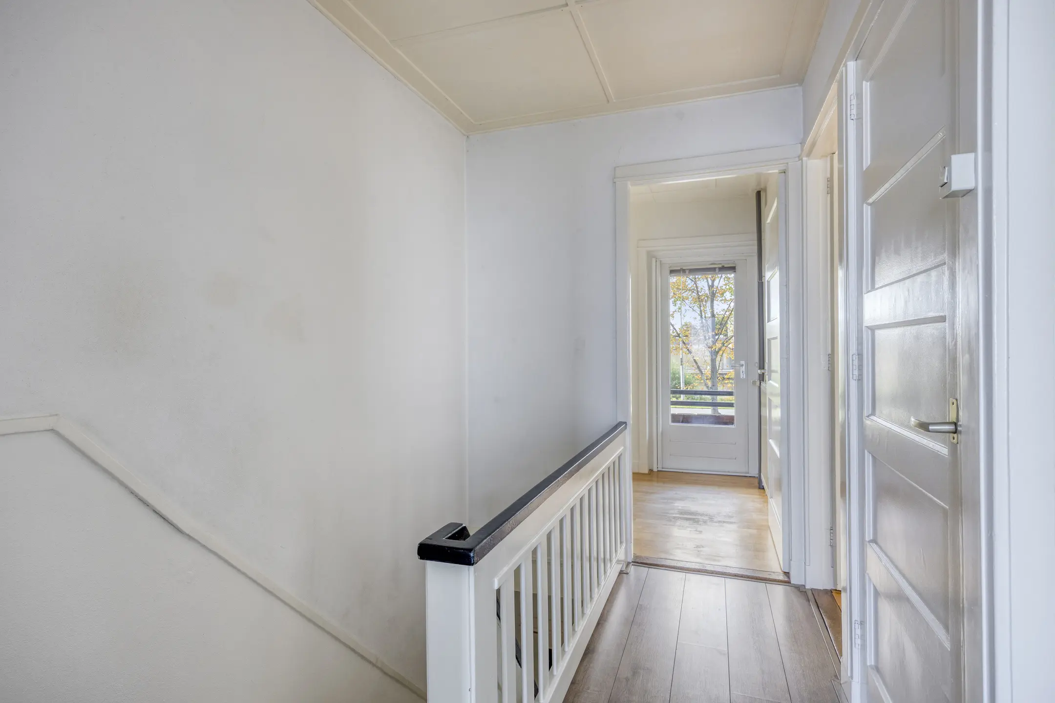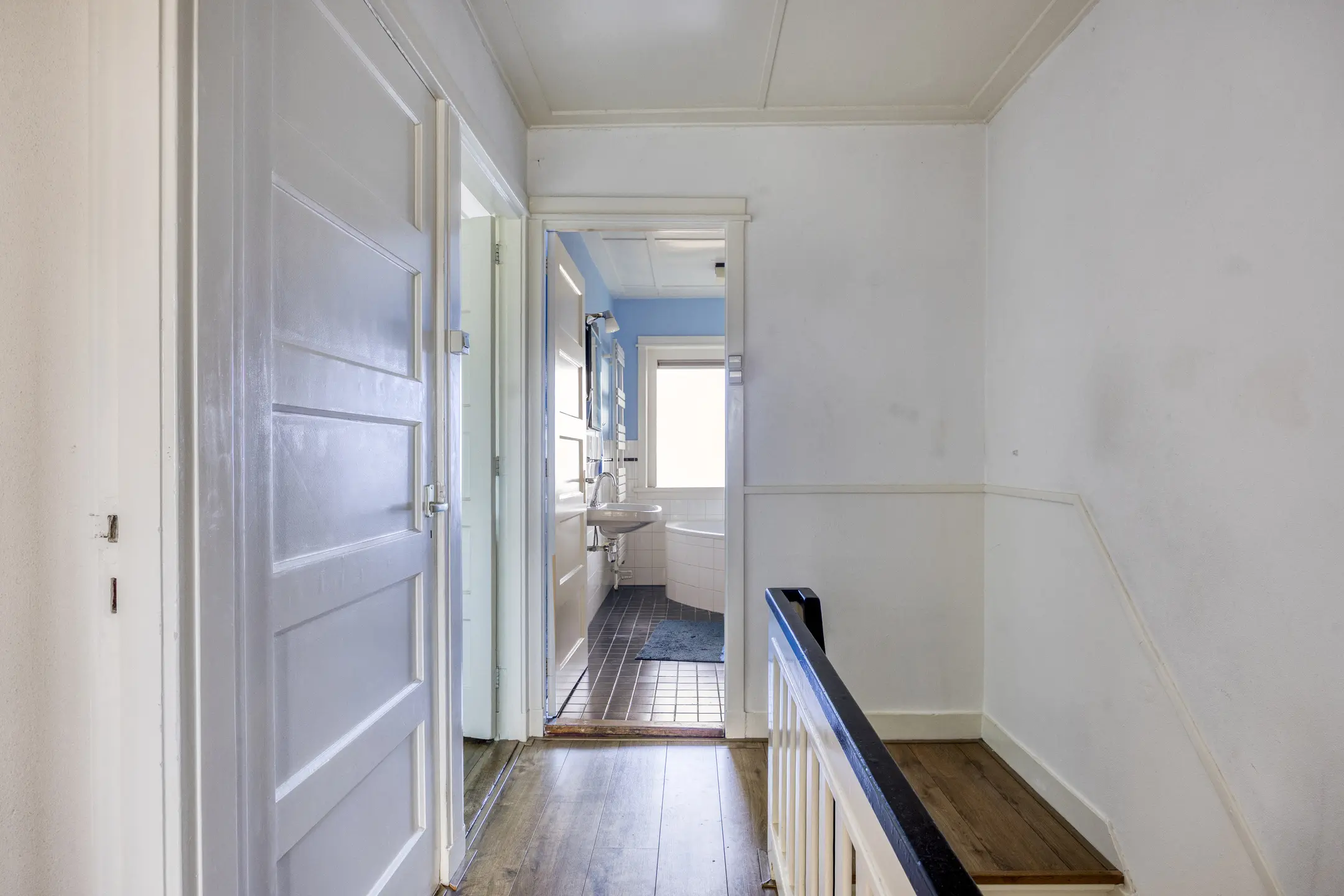 Landing with access to three (bed)rooms and a bathroom. All three (bed)rooms have access to adjacent balconies through French doors. Two of the bedrooms and the bathroom (with bathtub, sink, toilet, and heating) are generously sized.