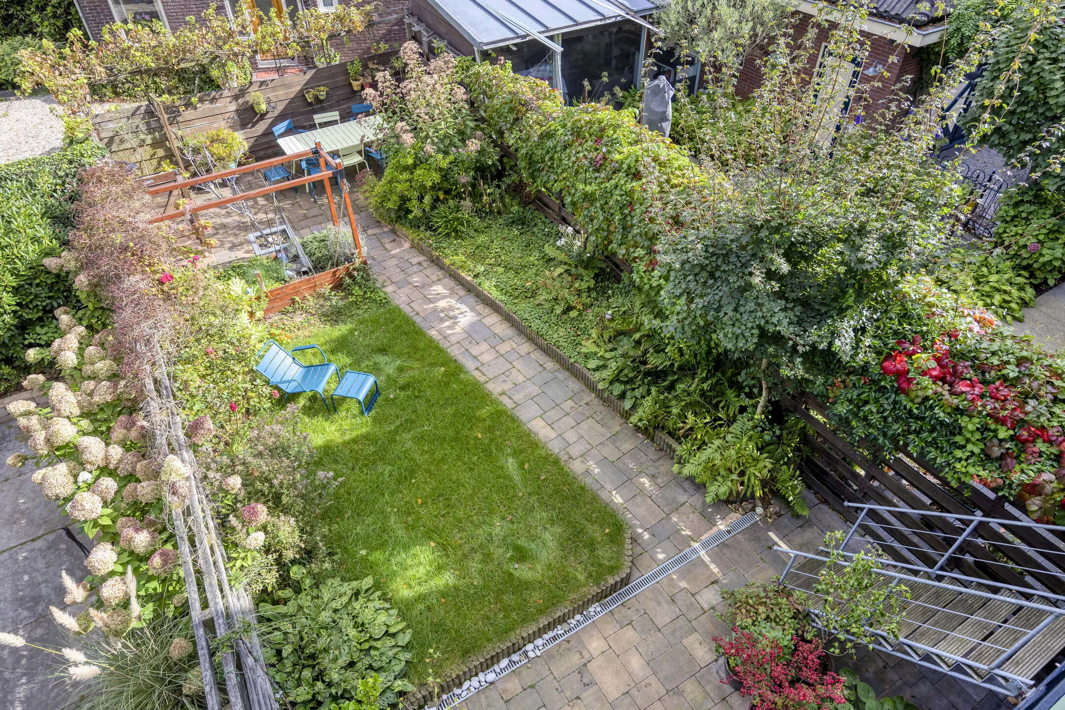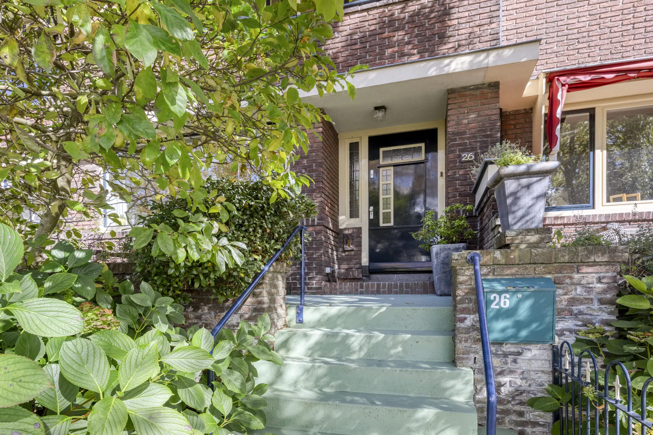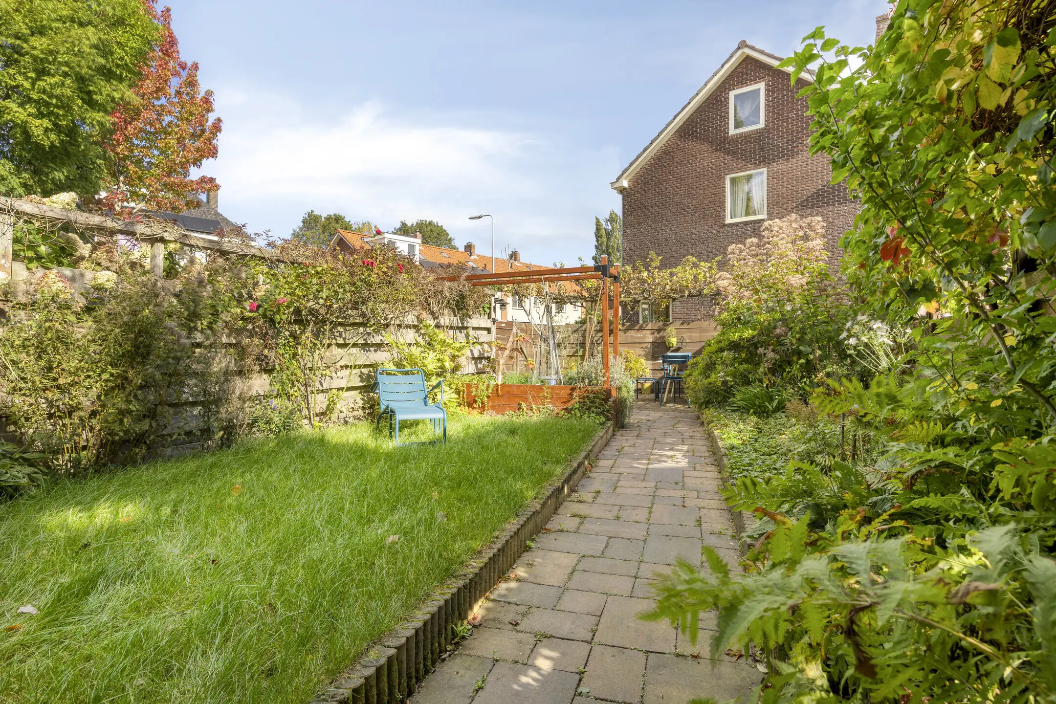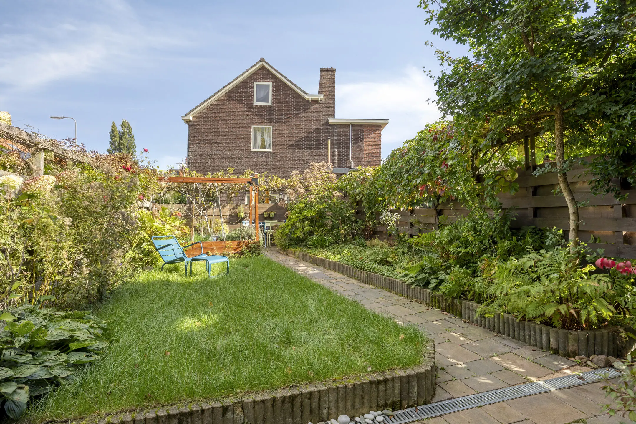 groen en gezelligheid van een jaren 30 woning met treden naar de beletage.