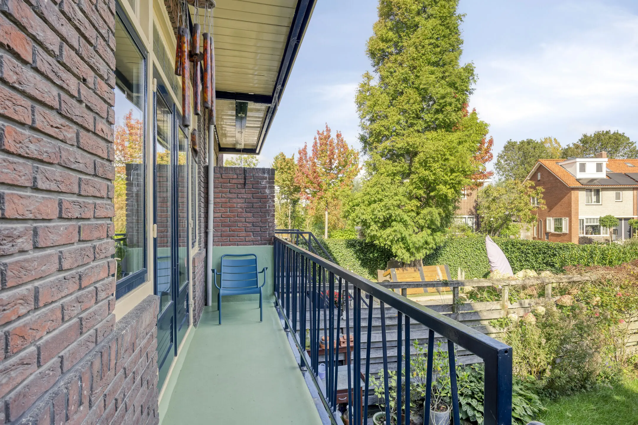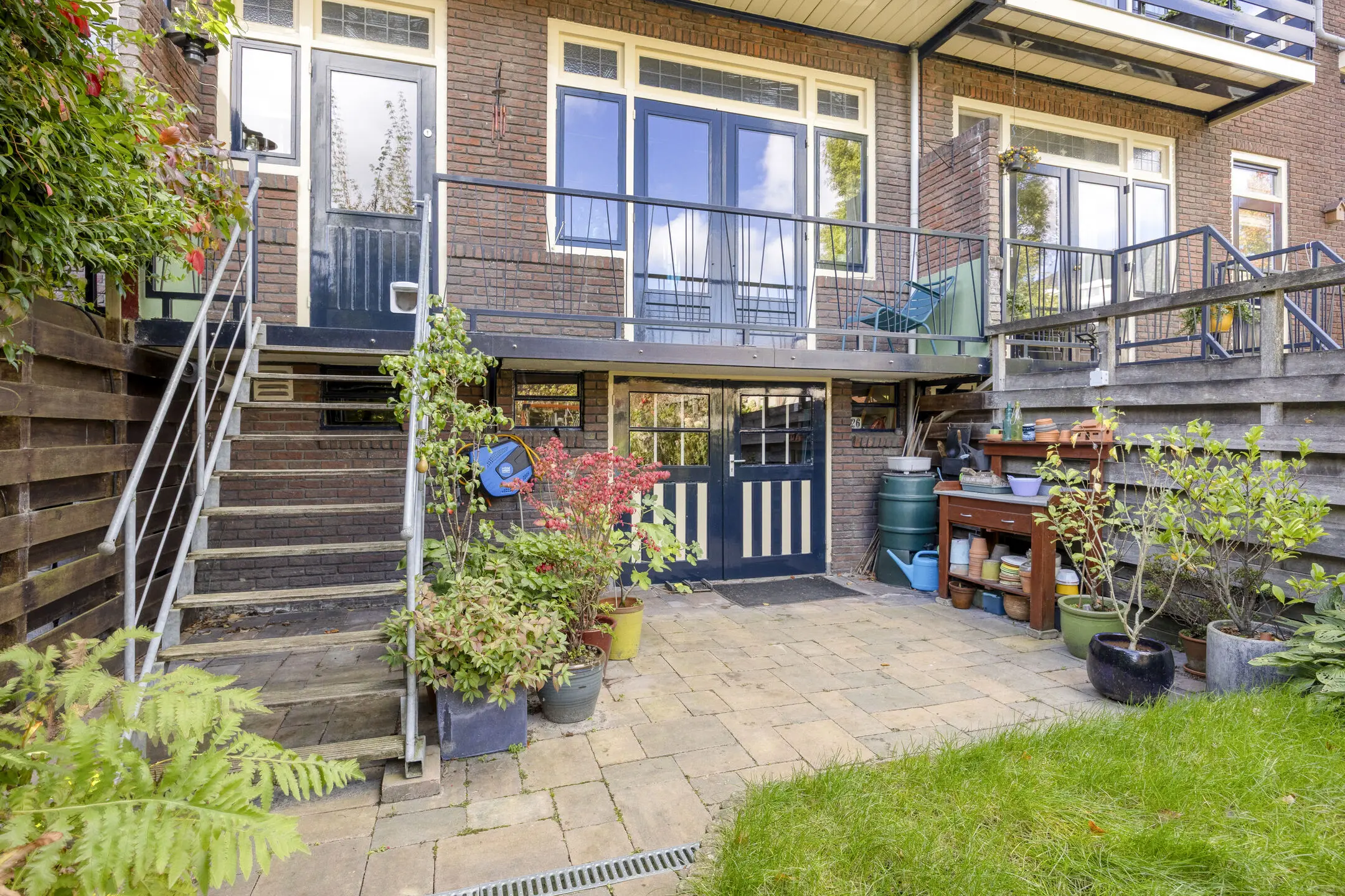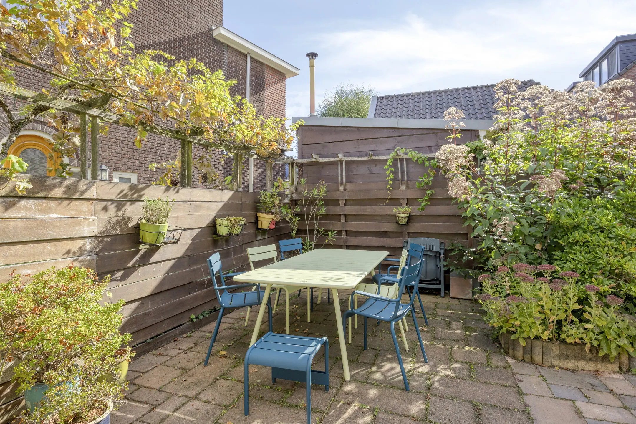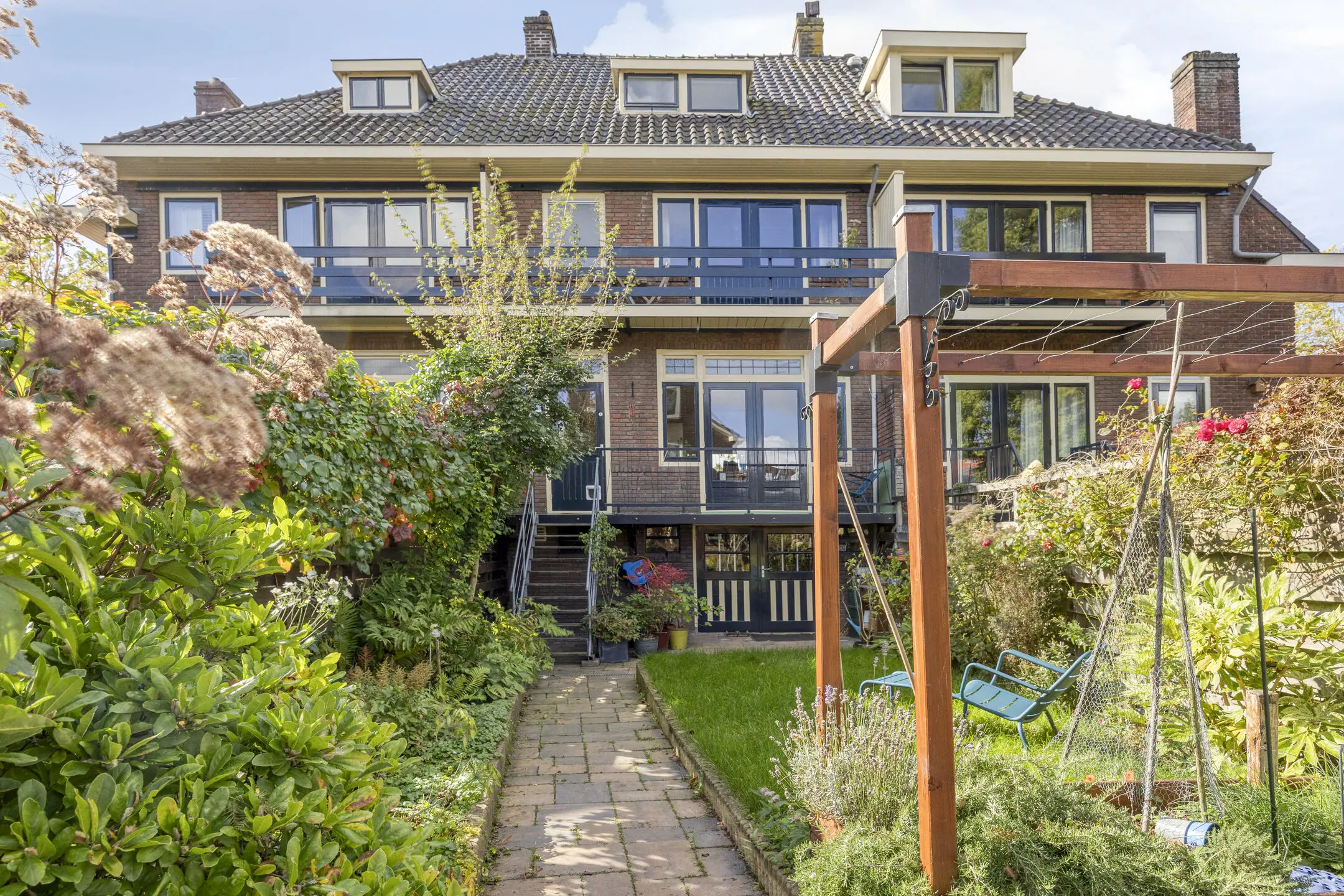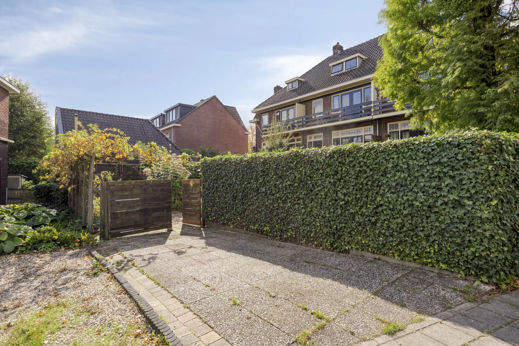 groen en gezelligheid van een jaren 30 woning met treden naar de beletage.
