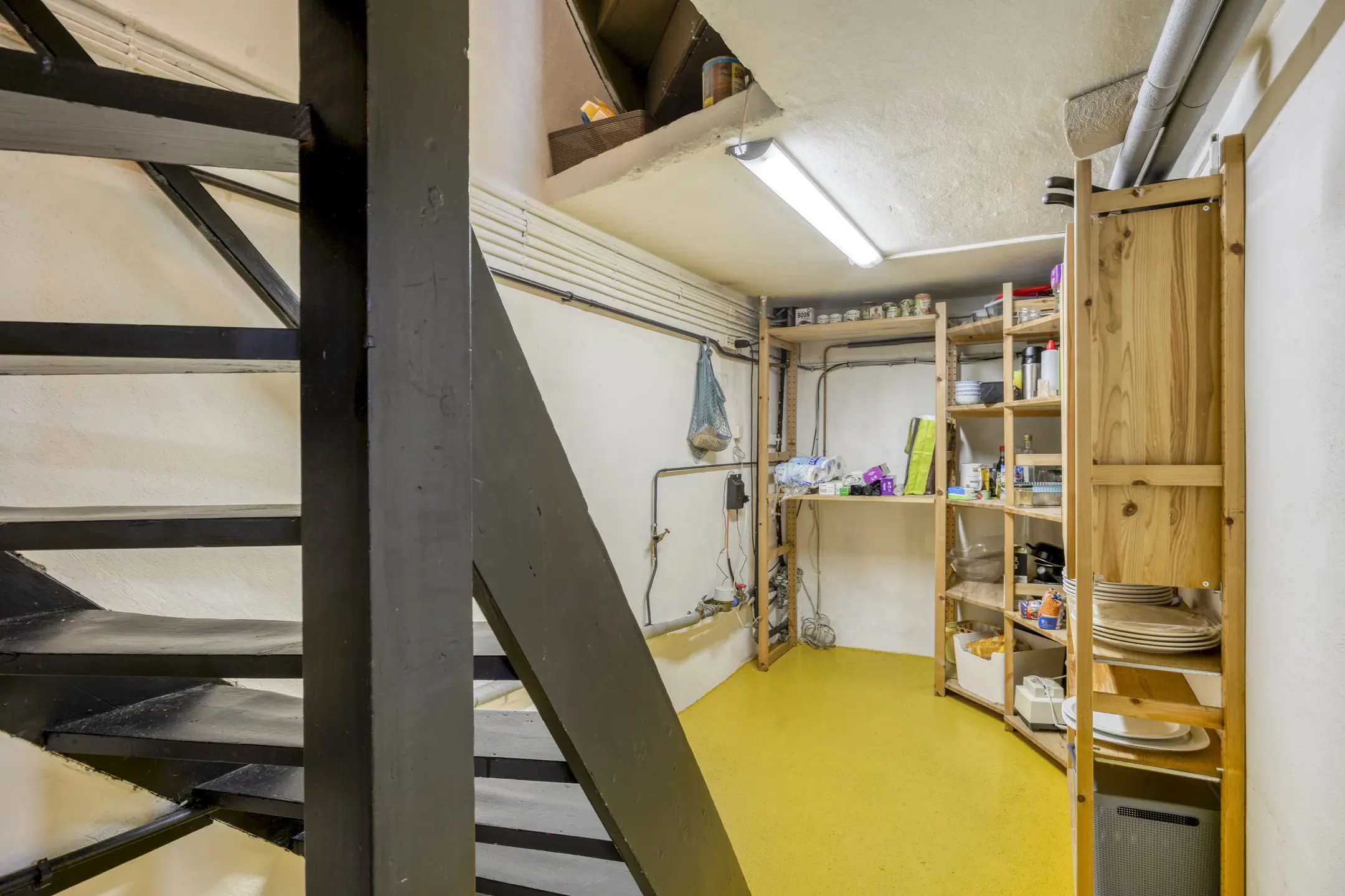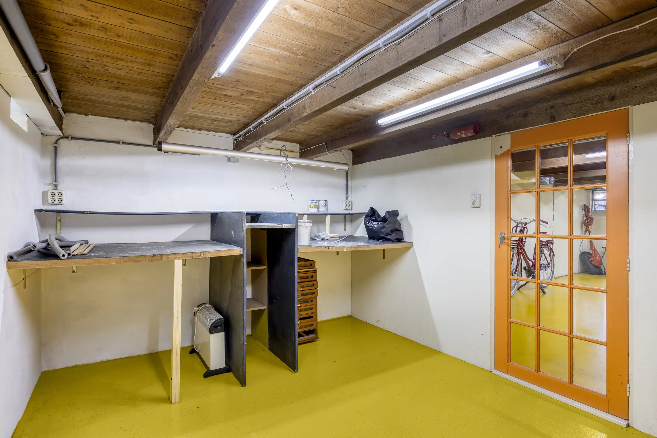 Heerlijk souterrain bestaande uit een hobby/werkkamer, voorraadruimte en zeer ruime kamer met directe toegang via openslaande deuren tot de ruime achtertuin. De stahoogte onder de balklaag is ca 1,8 m. Dit souterrain is eventueel bewerkbaar naar een privé-leefruimte voor bijvoorbeeld een oudere zoon of dochter.