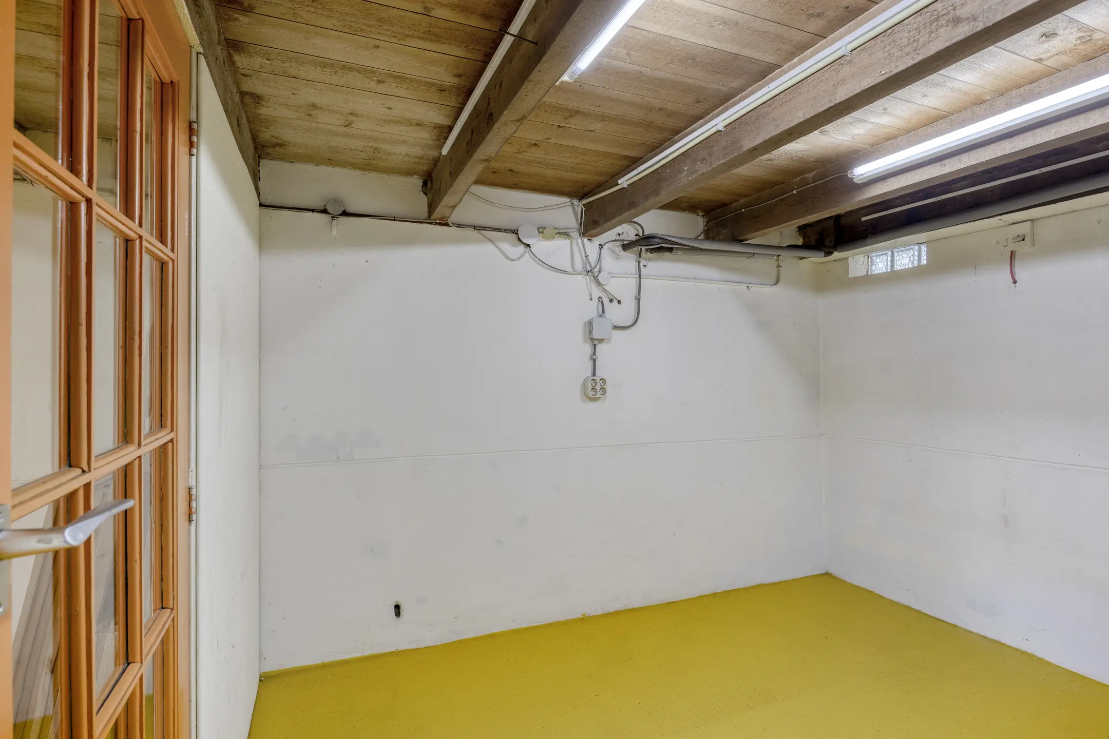 Lovely basement consisting of a hobby/study room, storage space, and a very spacious room with direct access through French doors to the large backyard. The ceiling height under the beam layer is approximately 1.8 m. This basement can potentially be converted into a private living space, for example, for an older son or daughter.