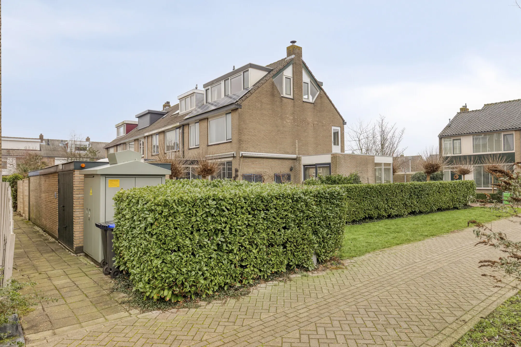 De berging is voorzien van een loopdeur naar de achterzijde en deur naar de tuin. De achterdeur van de woning is bereikbaar via de tuin. De berging is ook voorzien van alarm, elektra en grote lichtarmaturen. Via de zijkant van de woning kan de achtertuin en achterdeur bereikt worden.