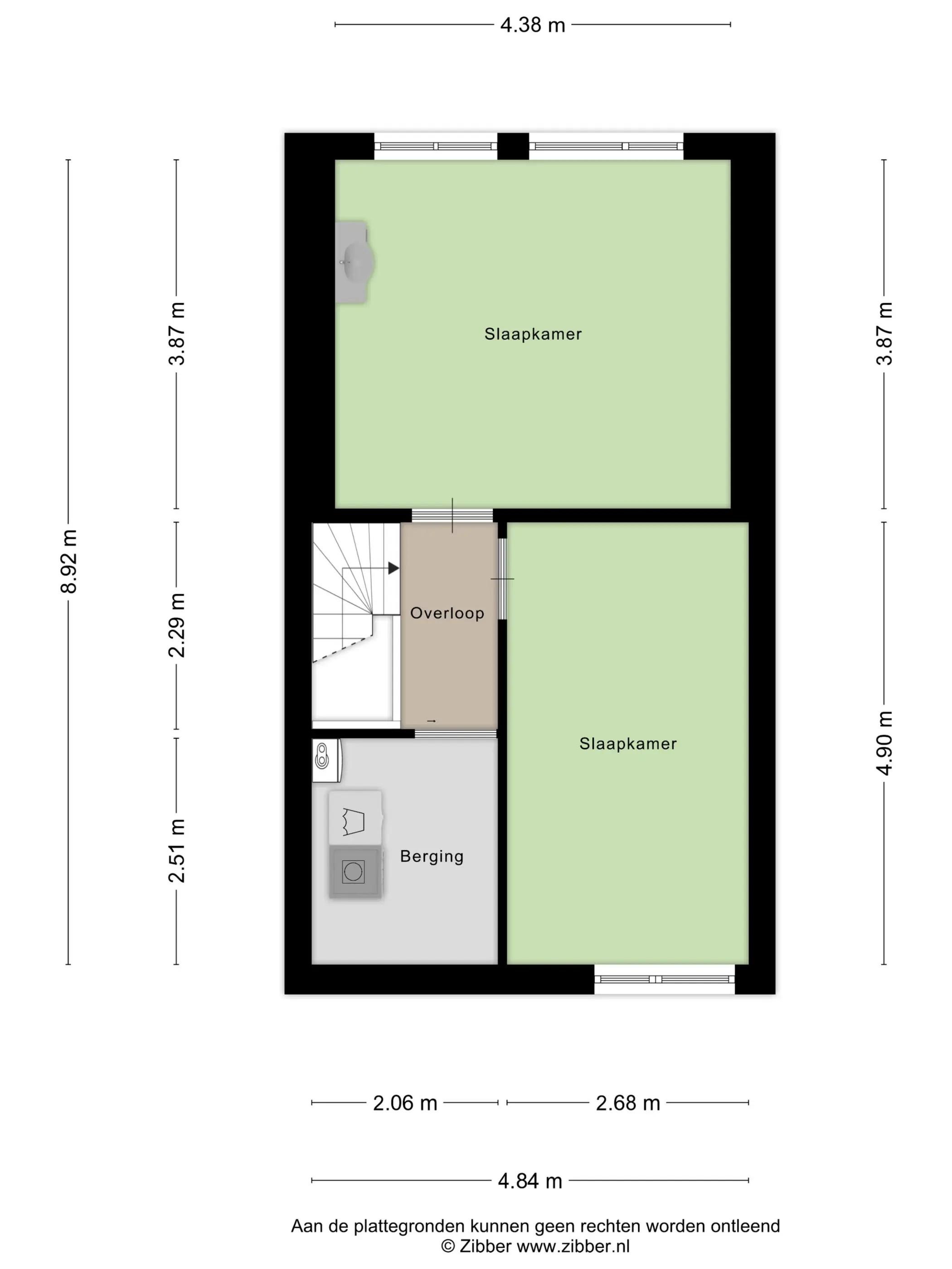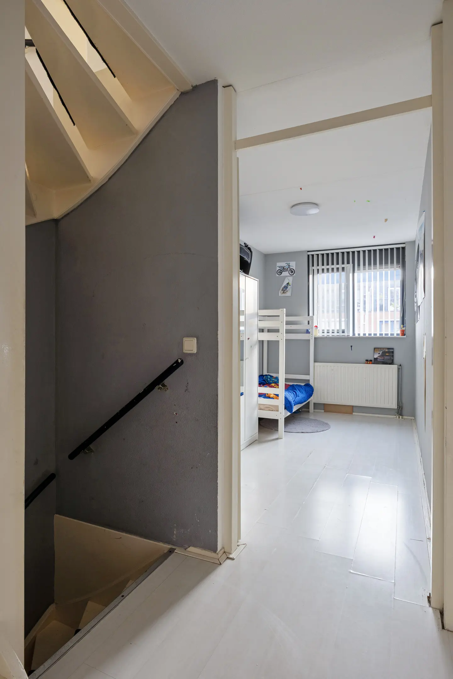 De tweede verdieping verrast met extra ruimte en flexibiliteit. Hier bevinden zich nog twee ruime slaapkamers met veel lichtinval, evenals een aparte berging met de aansluitingen voor wasapparatuur. Deze verdieping leent zich uitstekend als volwaardige slaapverdieping, maar kan ook dienstdoen als rustige werkplek of logeerruimte. Dankzij de rechte wanden is de ruimte goed te benutten en eenvoudig in te richten.